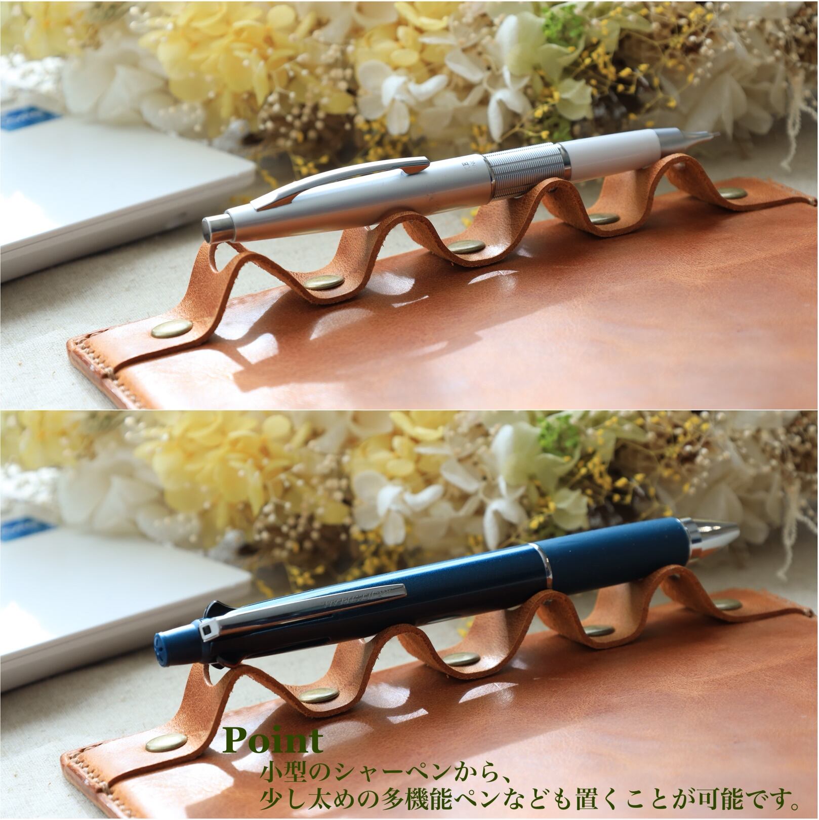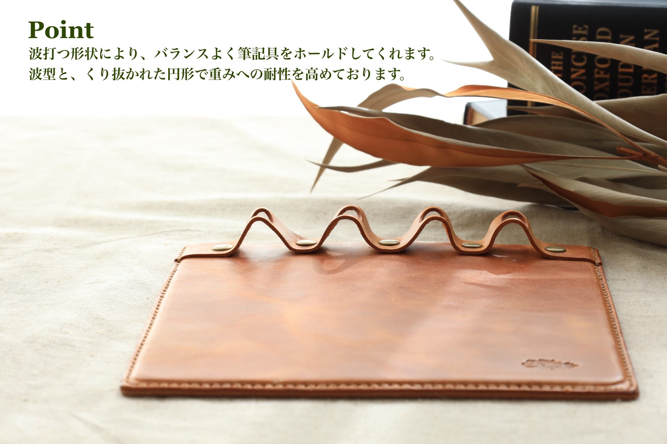 ペンレストは波打つような形状をしており、筆記具を手に取る際取りやすく設計しております。